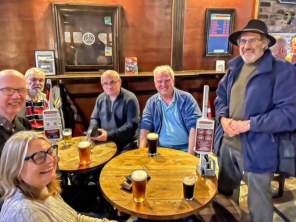 Most Camra members these days are also pensioners, and the out of town midweek trips organised by some branches make them honorary members of the Thursday Murder a Beer Club. The photo shows one of the Weekday Wanders organised by Stockport and South Manchester Camra which I joined on a trip to Wigan. And yes, that’s Bernard again in the photo along with my brother and sister-in-law Barry and Joan, and standing on the right, organiser Dave. The Weekday Wanders are tested in advance by Dave and a detailed plan is published before the day on the branch website. They have covered most parts of Greater Manchester and a couple of towns just outside. Just to be awkward, they usually take place on a Wednesday rather than a Thursday.