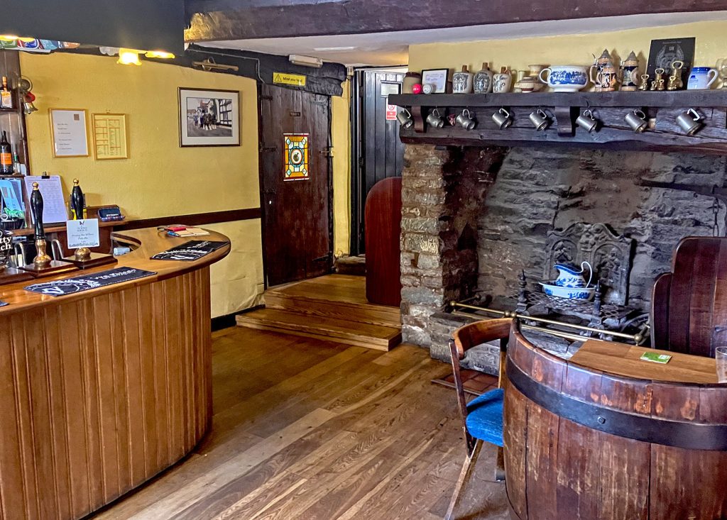We met another trio from Shropshire in the Olde Salutation in the picturesque black and white village of Weobley in Herefordshire. I had joined Bernard for a couple of days on his leisurely. pub-themed cycle ride from John O’Groats to Lands End. This leg was from Kington (previous night at the excellent Olde Tavern), and after a coffee at the quite old New Inn in Pembridge we stopped for a pint in Weobley. Mark, Ted and Quentin were already there (I got their names this time but not a photo). They had caught a train from Ludlow to Hereford, and arriving before the pubs opened, decided to catch a bus to Weobley. Mark was the beer enthusiast but the others were enjoying the Butty Bach and the chance to see rural Herefordshire. In true pub crawl style we saw them again later at the Barrels in Hereford.